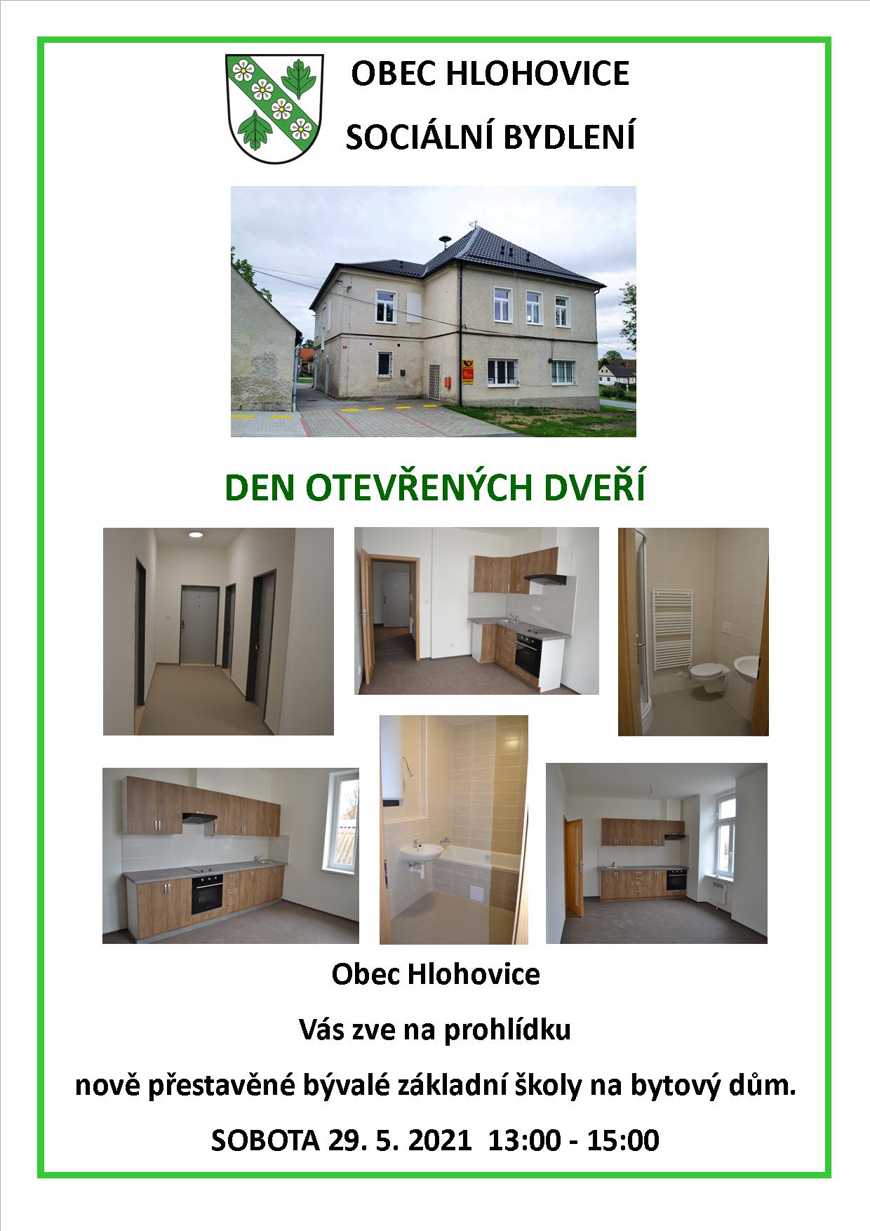 V sobotu 29. 5. 2021 se od 13:00 - 15:00 uskuteční den otevřených dveří bytového domu v Hlohovicích.